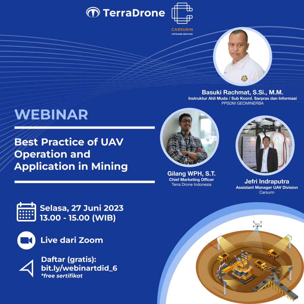 Ikuti webinar ini untuk membahas praktik-praktik standar, implementasi petunjuk teknis dari Dirjen Minerba, aplikasi serta perkembangan operasi UAV di industri pertambangan bersama narasumber: